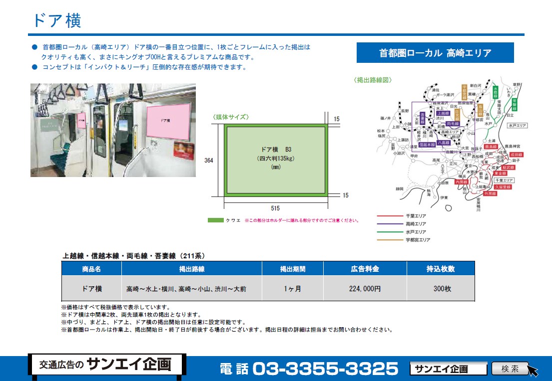 【首都圏ローカル(高崎エリア) ドア横 料金情報 2025年度版】