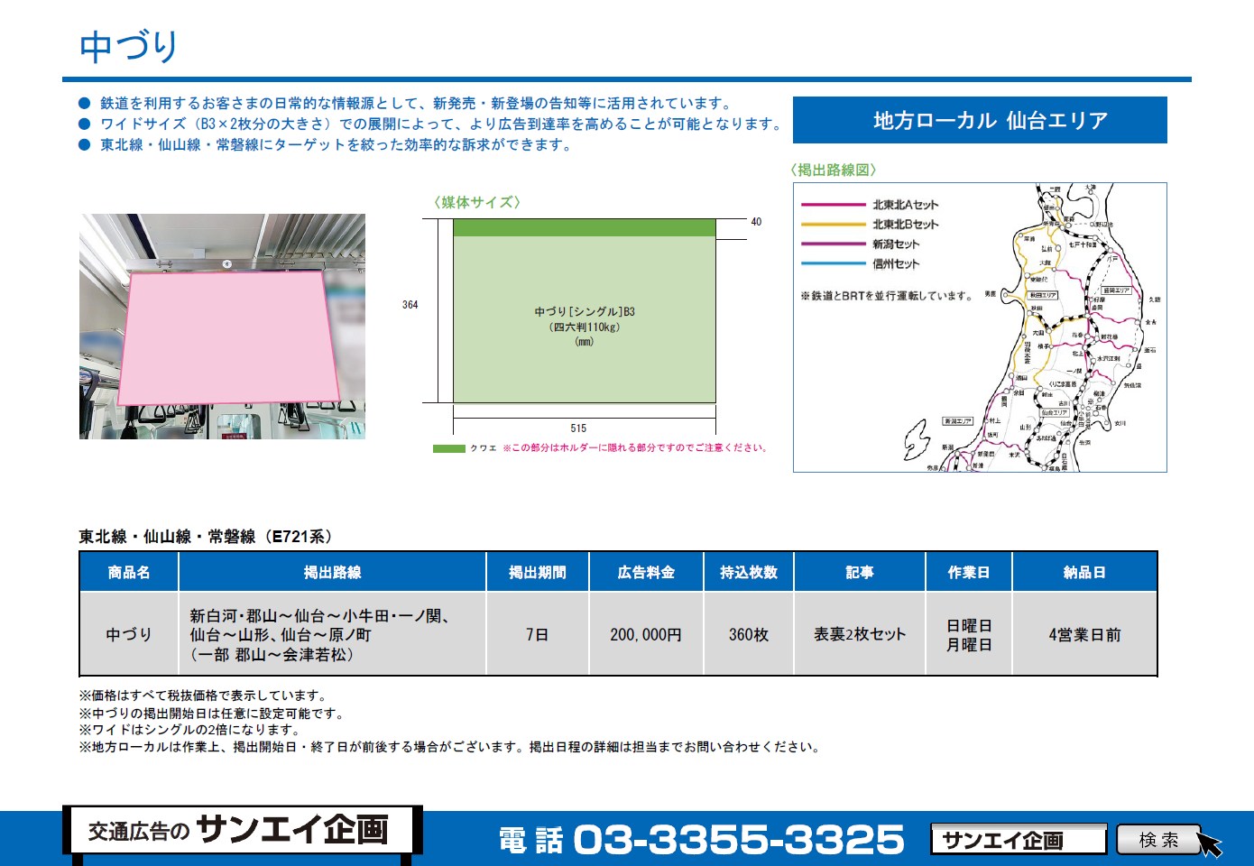 この度は、東北線・仙山線・常磐線の中吊りの料金のご案内です。
