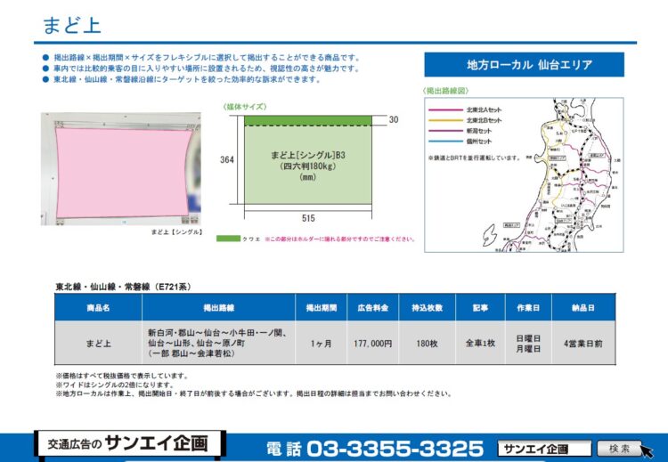 この度は、東北線・仙山線・常磐線のまど上の料金のご案内です。