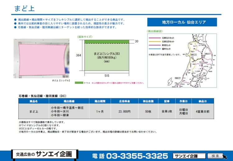 この度は、石巻線・気仙沼線・陸羽東線のまど上の料金のご案内です。