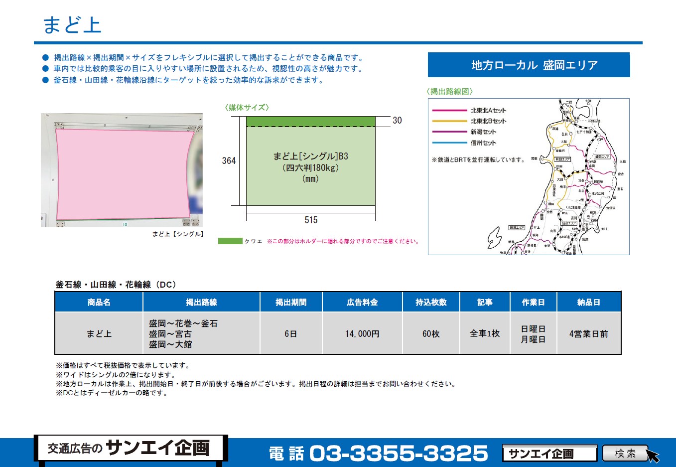 この度は、釜石線・山田線・花輪線のまど上の料金のご案内です。