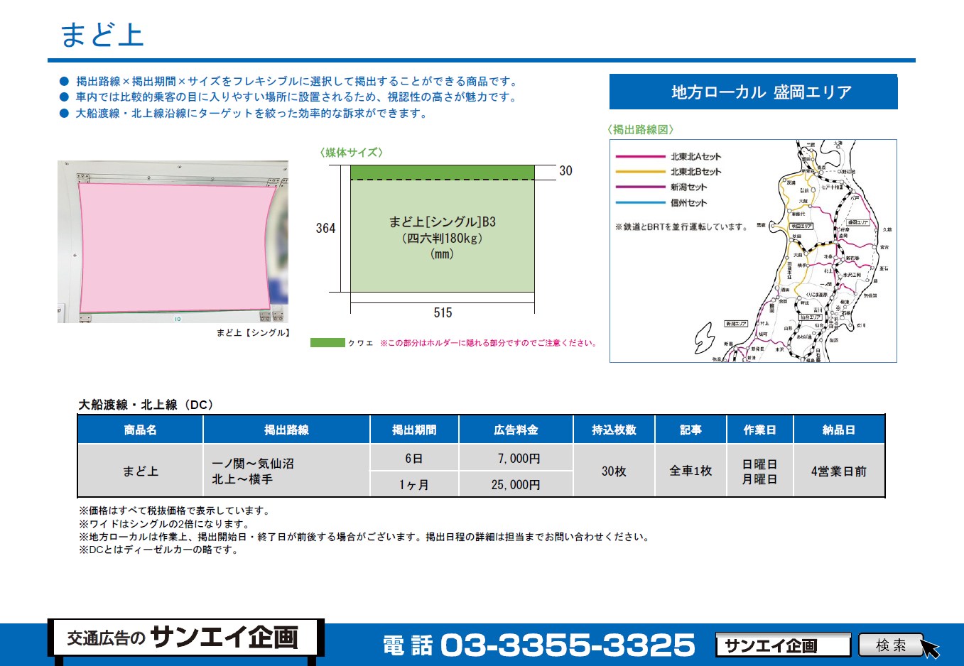 【地方ローカル(盛岡エリア・大船渡線/北上線)まど上 料金情報 2025年度版】