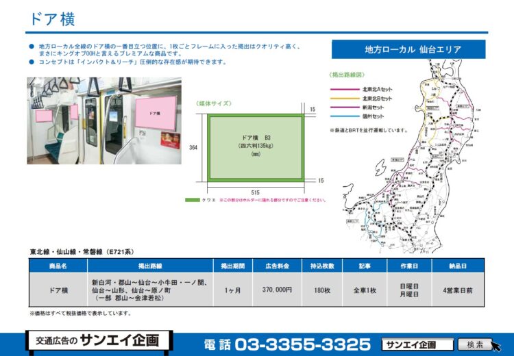 【地方ローカル(仙台エリア・東北線/仙山線/常磐線)ドア横 料金情報 2025年度版】