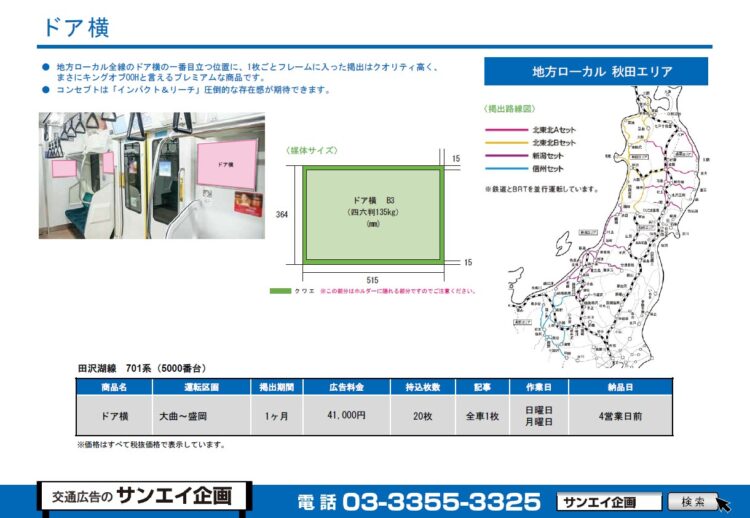 この度は、田沢湖線のドア横の料金のご案内です。