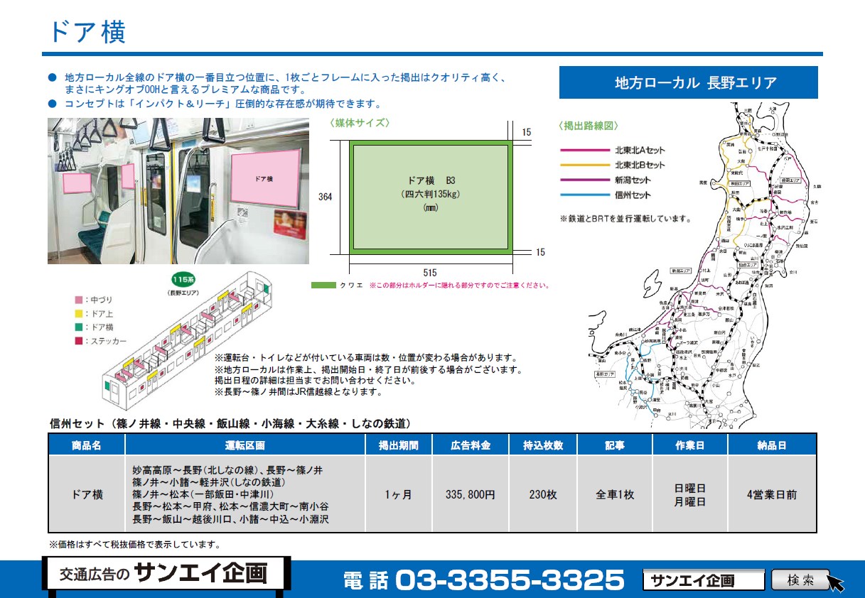 ________________________________________ 資料をお付けします。 ↓をダウンロードしてください。 地方ローカル(長野エリア)篠ノ井線・中央線・飯山線・小海線・大糸線・しなの鉄道 料金表(ドア横)