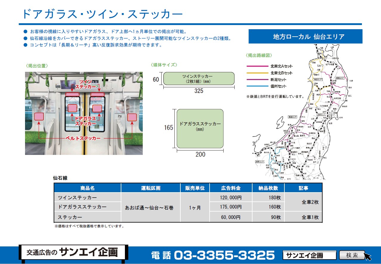 この度は、仙石線のドアガラス・ツインステッカー料金のご案内です。