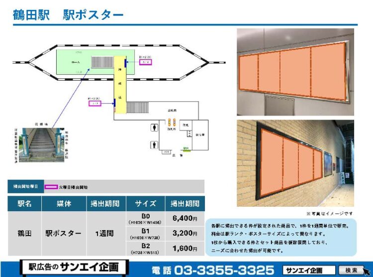 JR鶴田駅 駅ポスター掲示場所および料金表