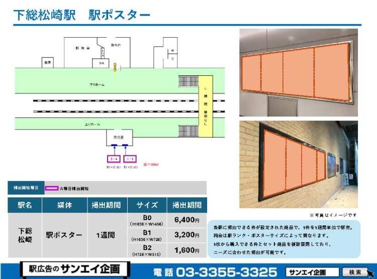 この度は、JR下総松崎駅の駅貼りポスター(駅に貼るポスター)のご案内です。