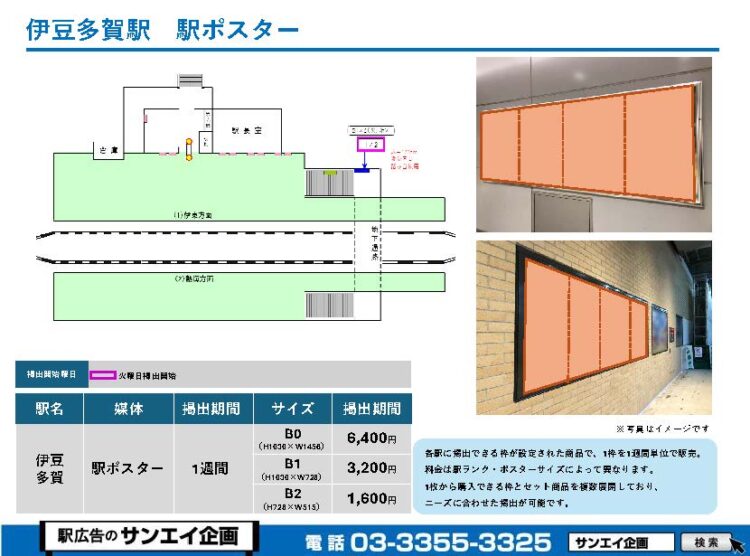 この度は、JR伊豆多賀駅の駅貼りポスター(駅に貼るポスター)のご案内です。
