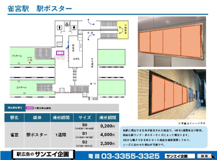 JR雀宮駅 駅ポスター掲示場所および料金表