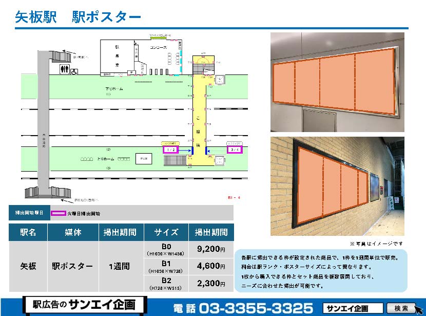 JR矢板駅 駅ポスター掲示場所および料金表