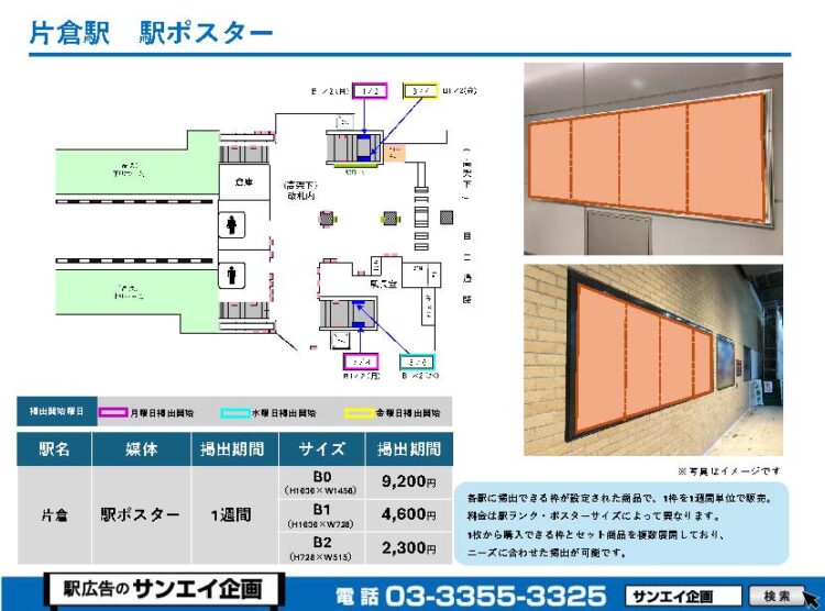 この度は、JR片倉駅の駅貼りポスター(駅に貼るポスター)のご案内です。