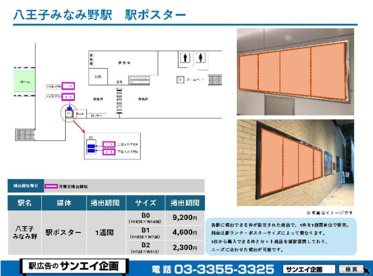 JR八王子みなみ野駅 駅ポスター掲示場所および料金表