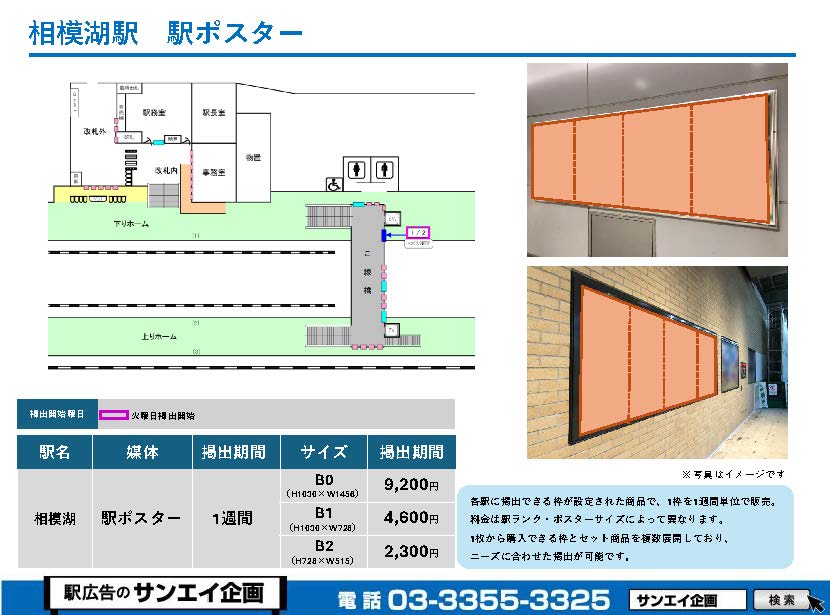 JR相模湖駅 駅ポスター掲示場所および料金表