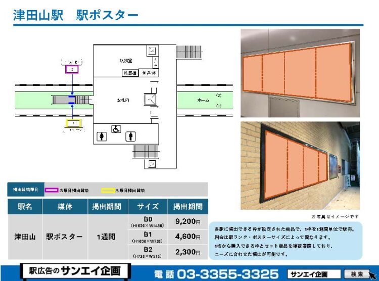 この度は、JR津田山駅の駅貼りポスター(駅に貼るポスター)のご案内です。