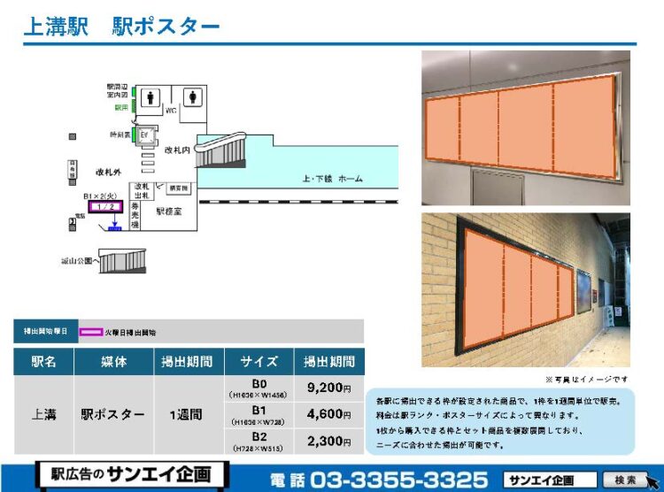 JR上溝駅 駅ポスター掲示場所および料金表