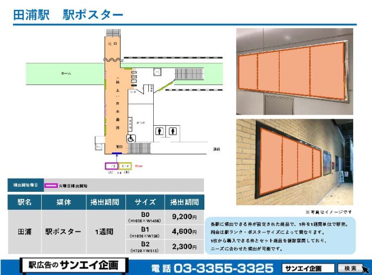 駅ポスターは、短期で比較的お安くできるのが特徴です。