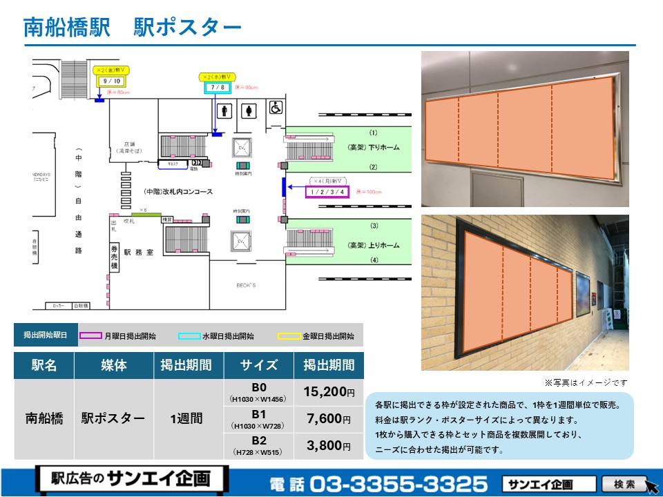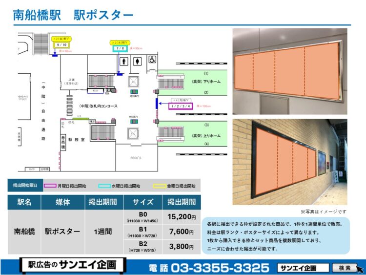 この度は、JR南船橋駅の駅貼りポスター(駅に貼るポスター)のご案内です。