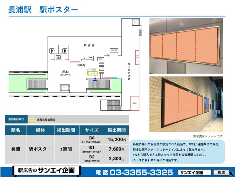 この度は、JR長浦駅の駅貼りポスター(駅に貼るポスター)のご案内です。