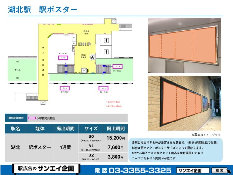 この度は、JR湖北駅の駅貼りポスター(駅に貼るポスター)のご案内です。