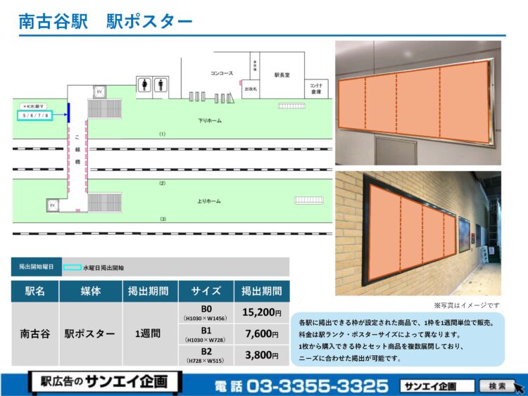 この度は、JR南古谷駅の駅貼りポスター(駅に貼るポスター)のご案内です。