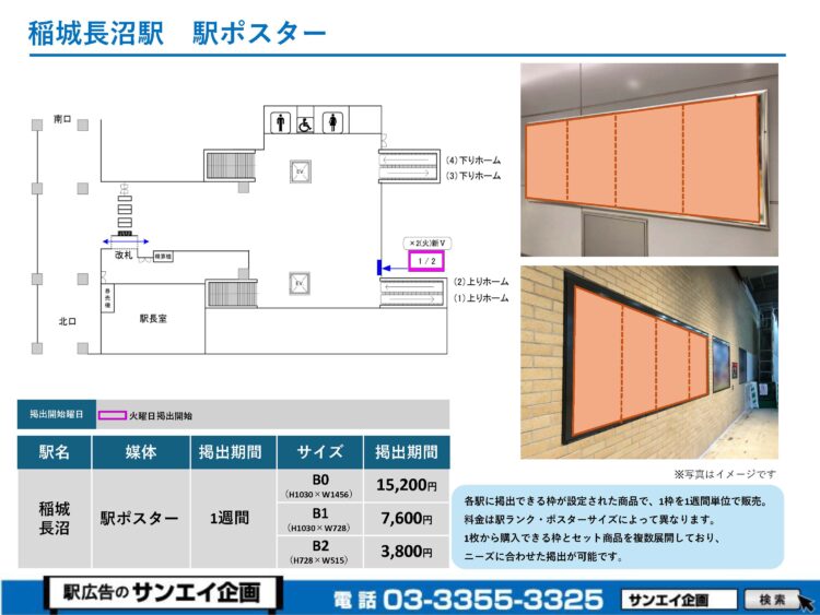 この度は、JR稲城長沼駅の駅貼りポスター(駅に貼るポスター)のご案内です。