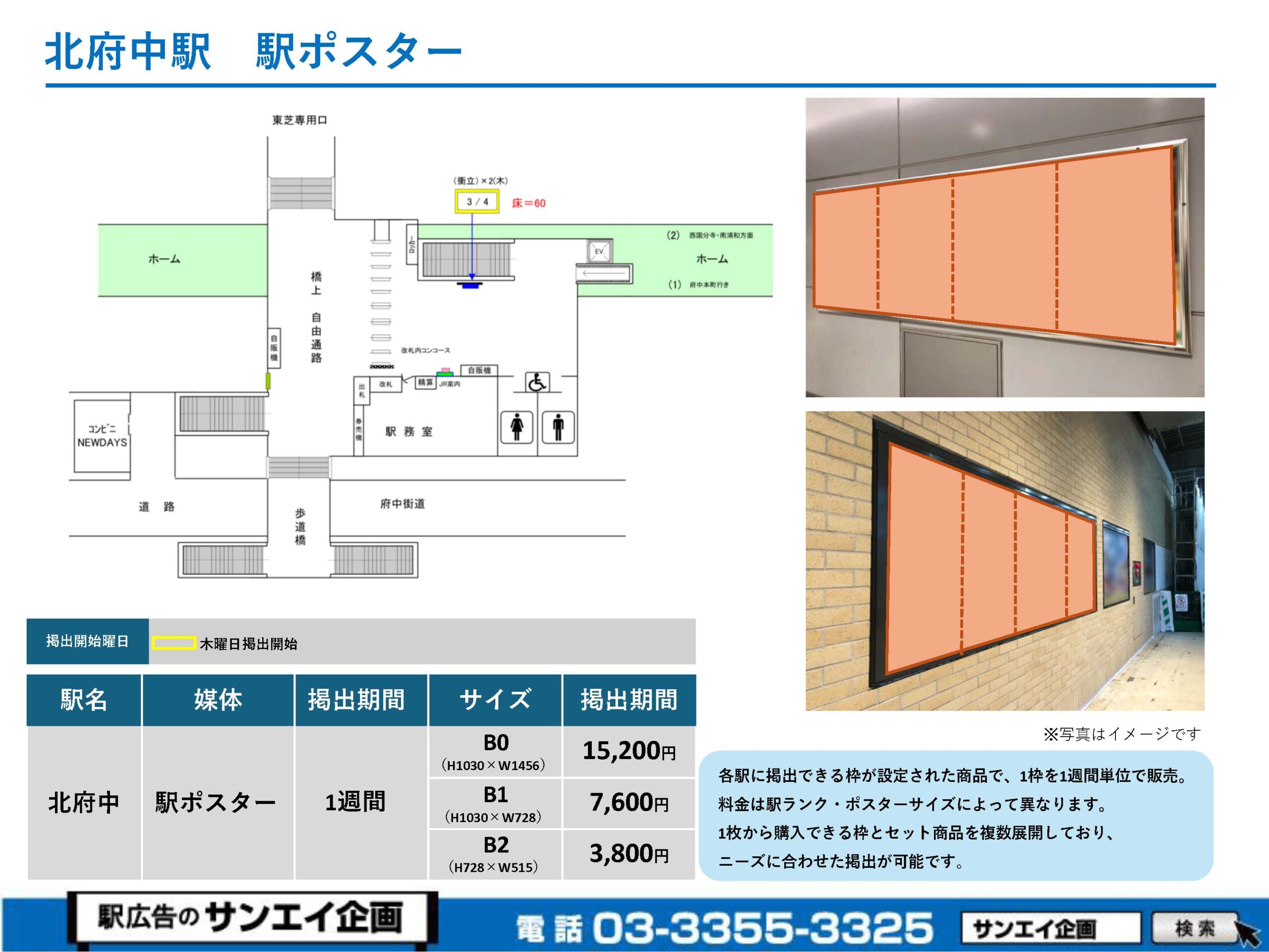JR北府中駅 駅ポスター掲示場所および料金表