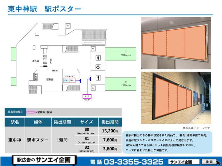 この度は、JR東中神駅の駅貼りポスター(駅に貼るポスター)のご案内です。