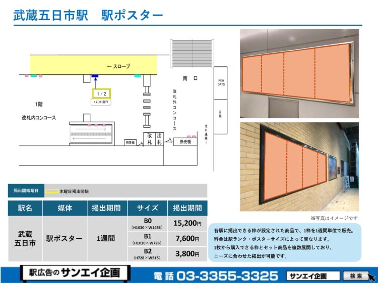 JR武蔵五日市駅 駅ポスター掲示場所および料金表