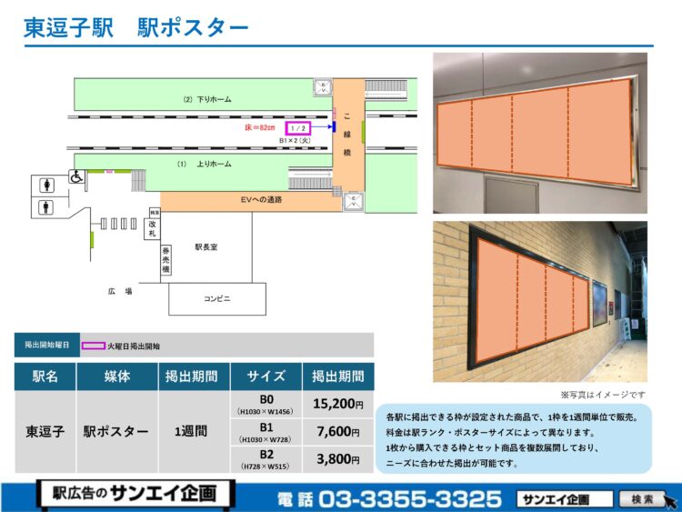 JR東逗子駅 駅ポスター掲示場所および料金表
