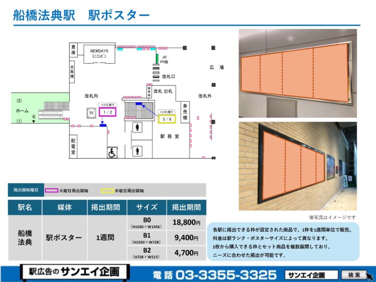 JR船橋法典駅 駅ポスター掲示場所および料金表