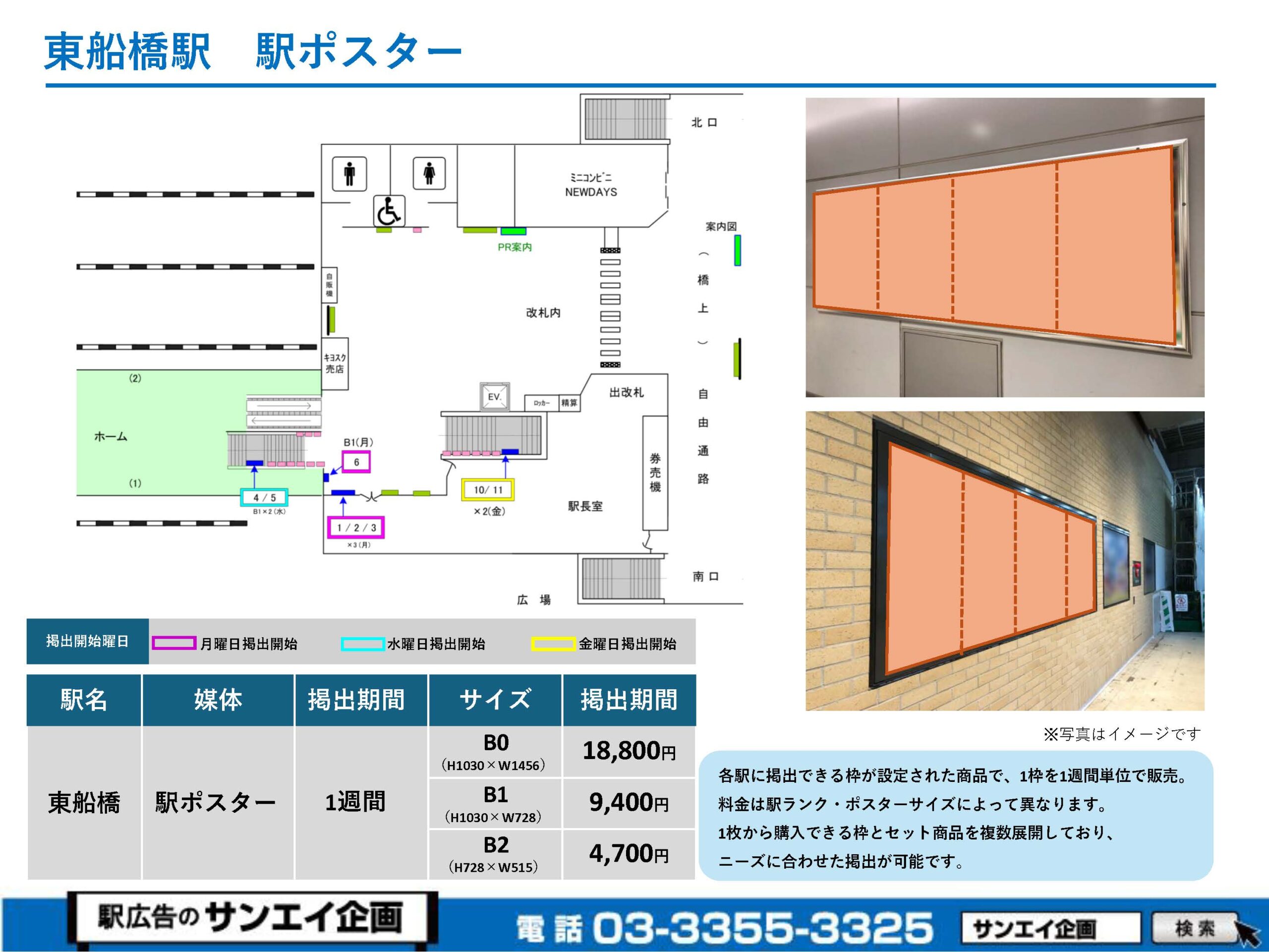JR東船橋駅 駅ポスター掲示場所および料金表