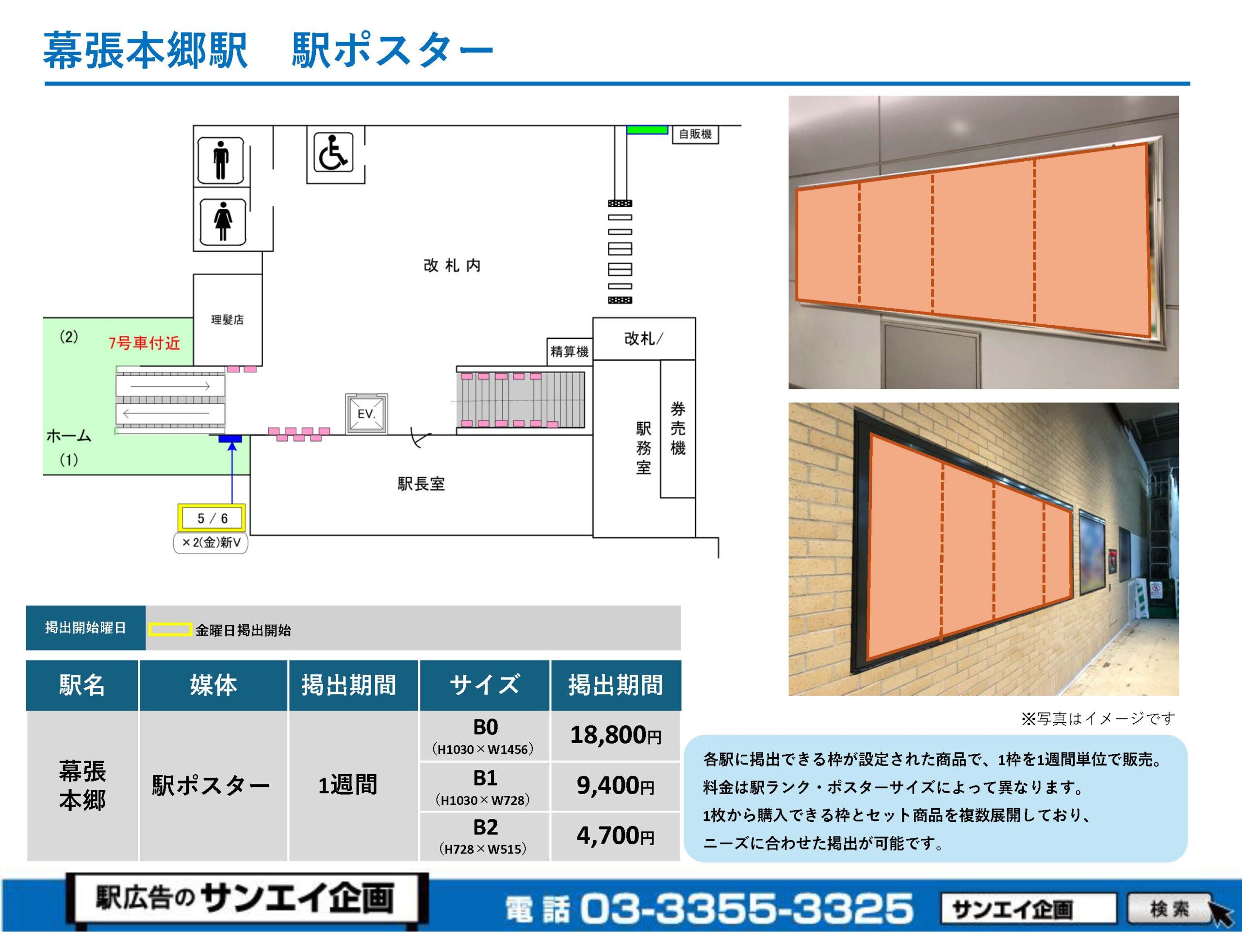 この度は、JR幕張本郷駅の駅貼りポスター(駅に貼るポスター)のご案内です。