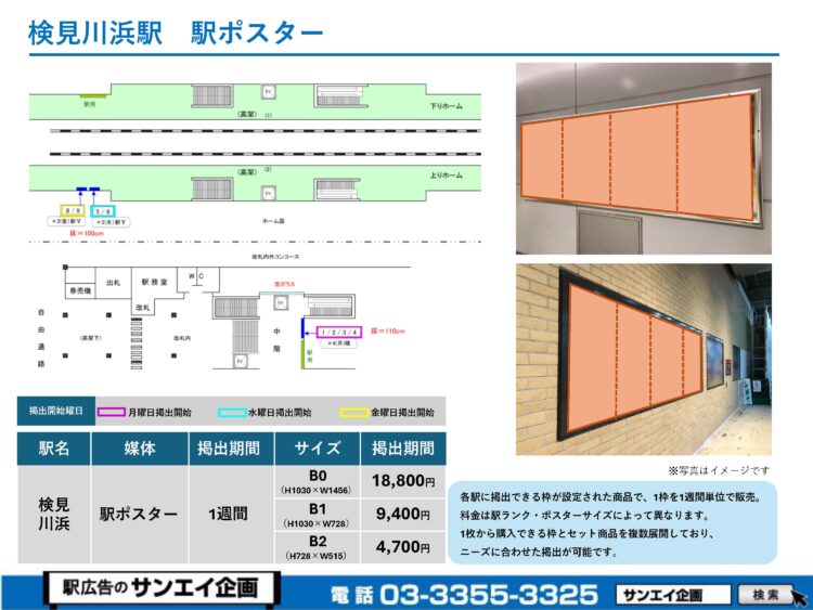 JR検見川浜駅 駅ポスター掲示場所および料金表