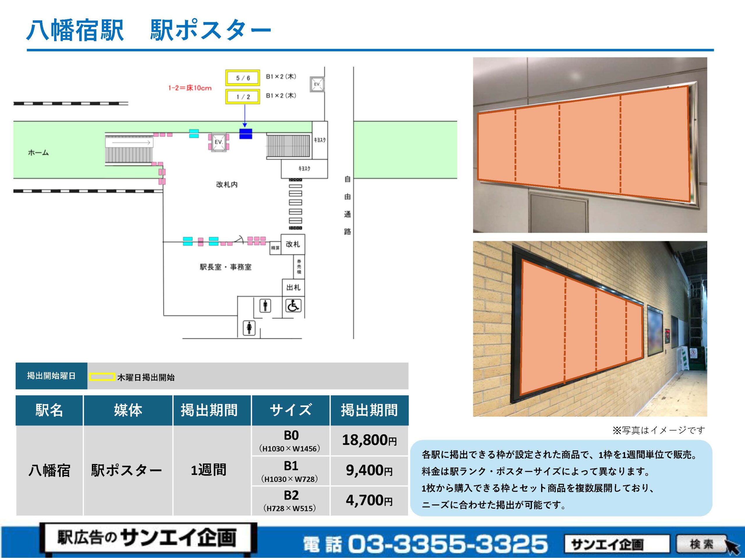 JR八幡宿駅 駅ポスター掲示場所および料金表
