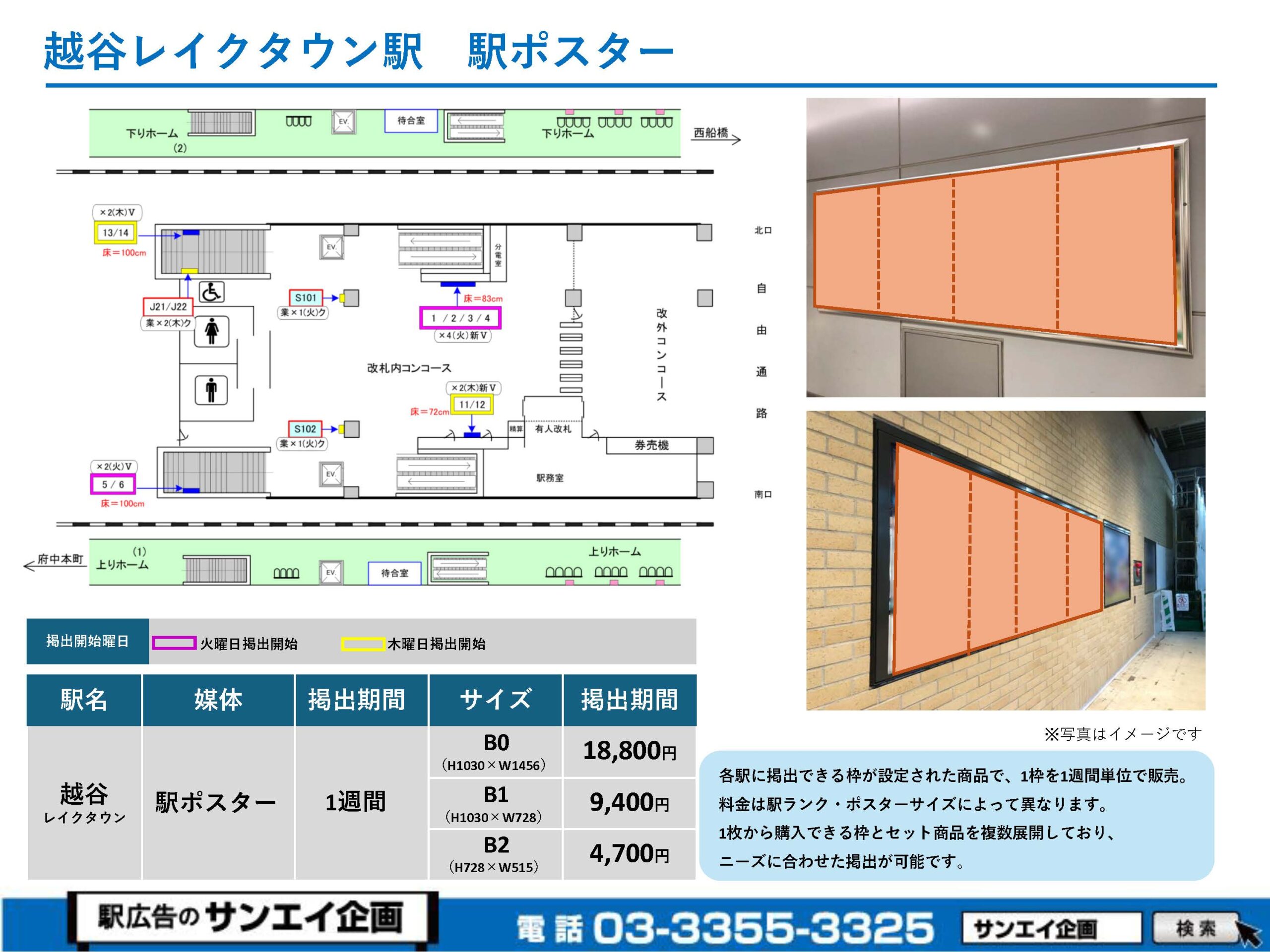 JR越谷レイクタウン駅 駅ポスター掲示場所および料金表