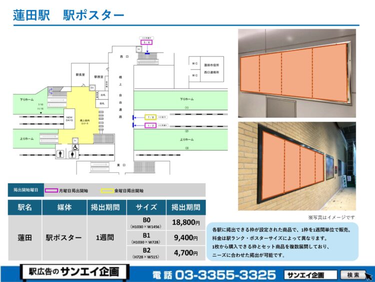 JR蓮田駅 駅ポスター掲示場所および料金表