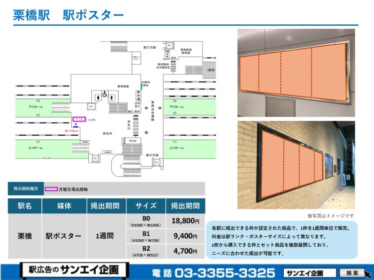 JR栗橋駅 駅ポスター掲示場所および料金表