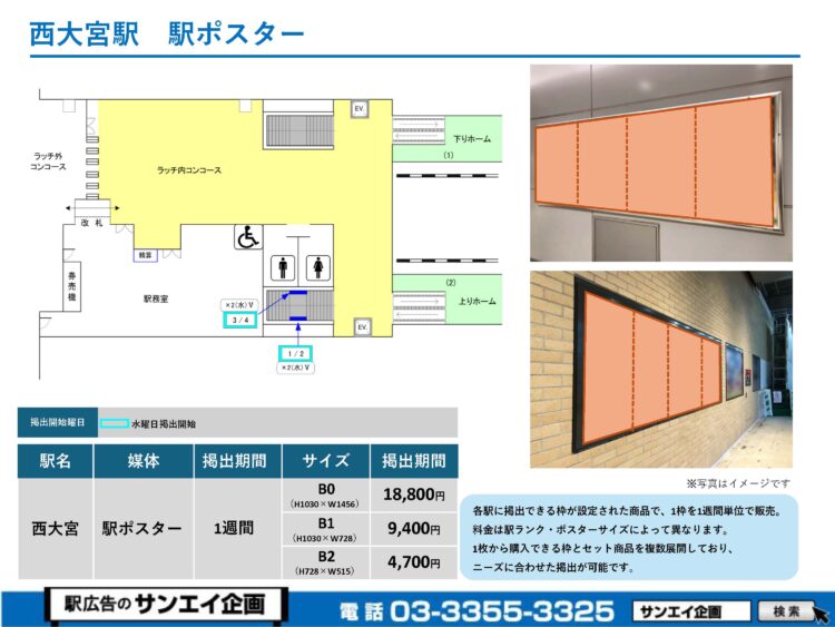 JR西大宮駅 駅ポスター掲示場所および料金表