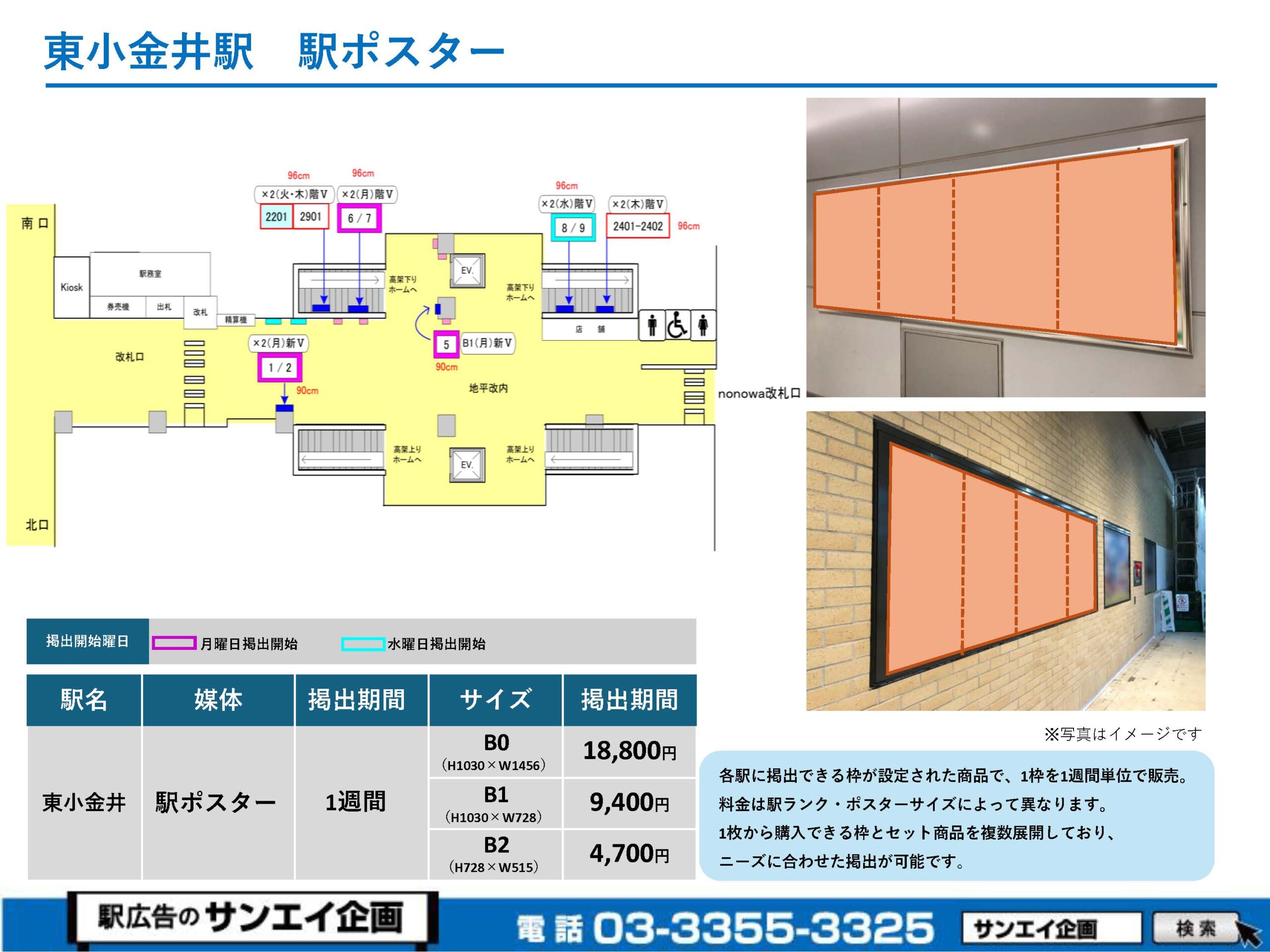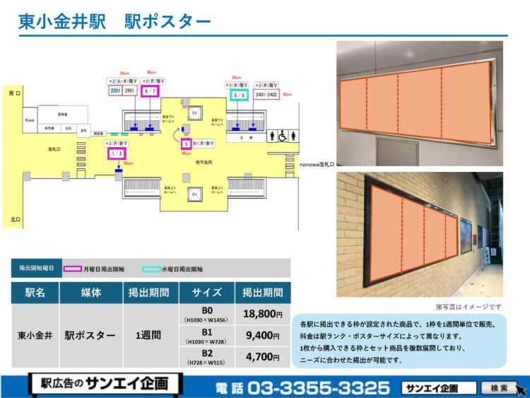 JR東小金井駅 駅ポスター掲示場所および料金表