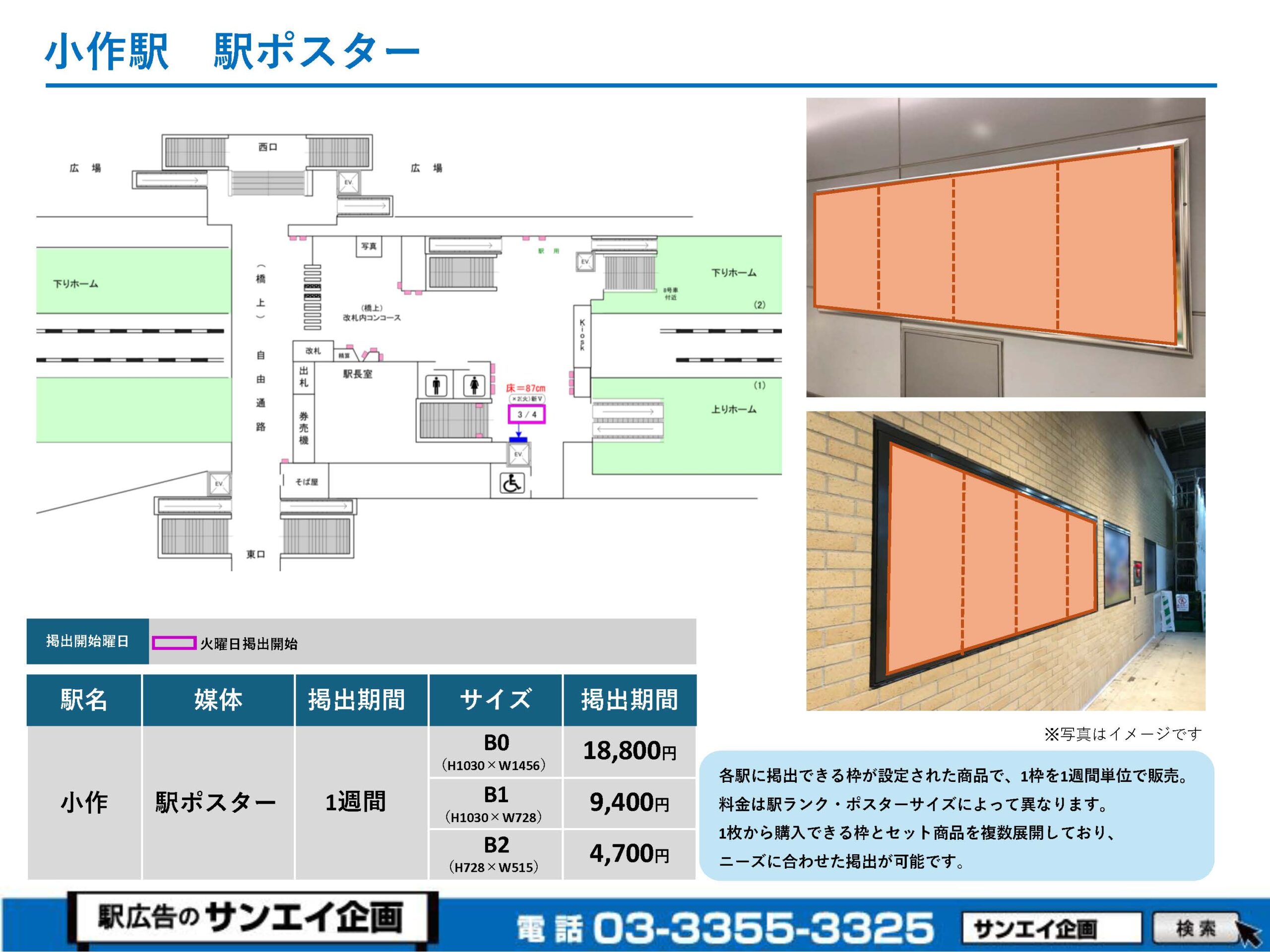 JR小作駅 駅ポスター掲示場所および料金表