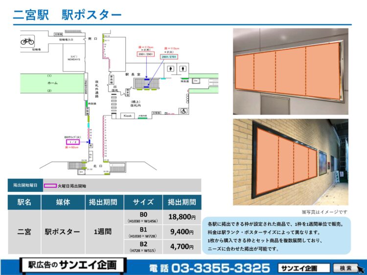 JR二宮駅 駅ポスター掲示場所および料金表