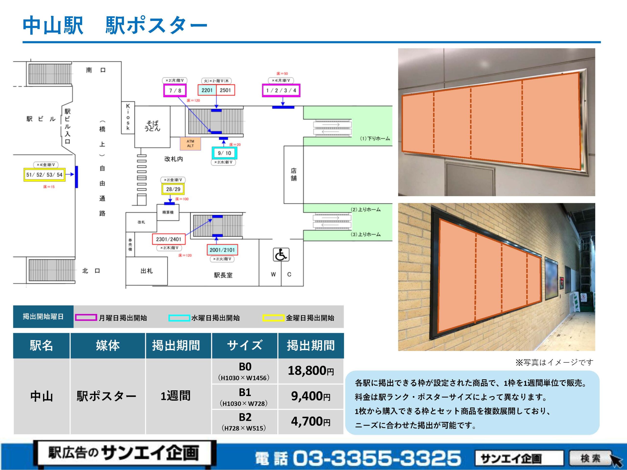 この度は、JR中山駅の駅貼りポスター(駅に貼るポスター)のご案内です。