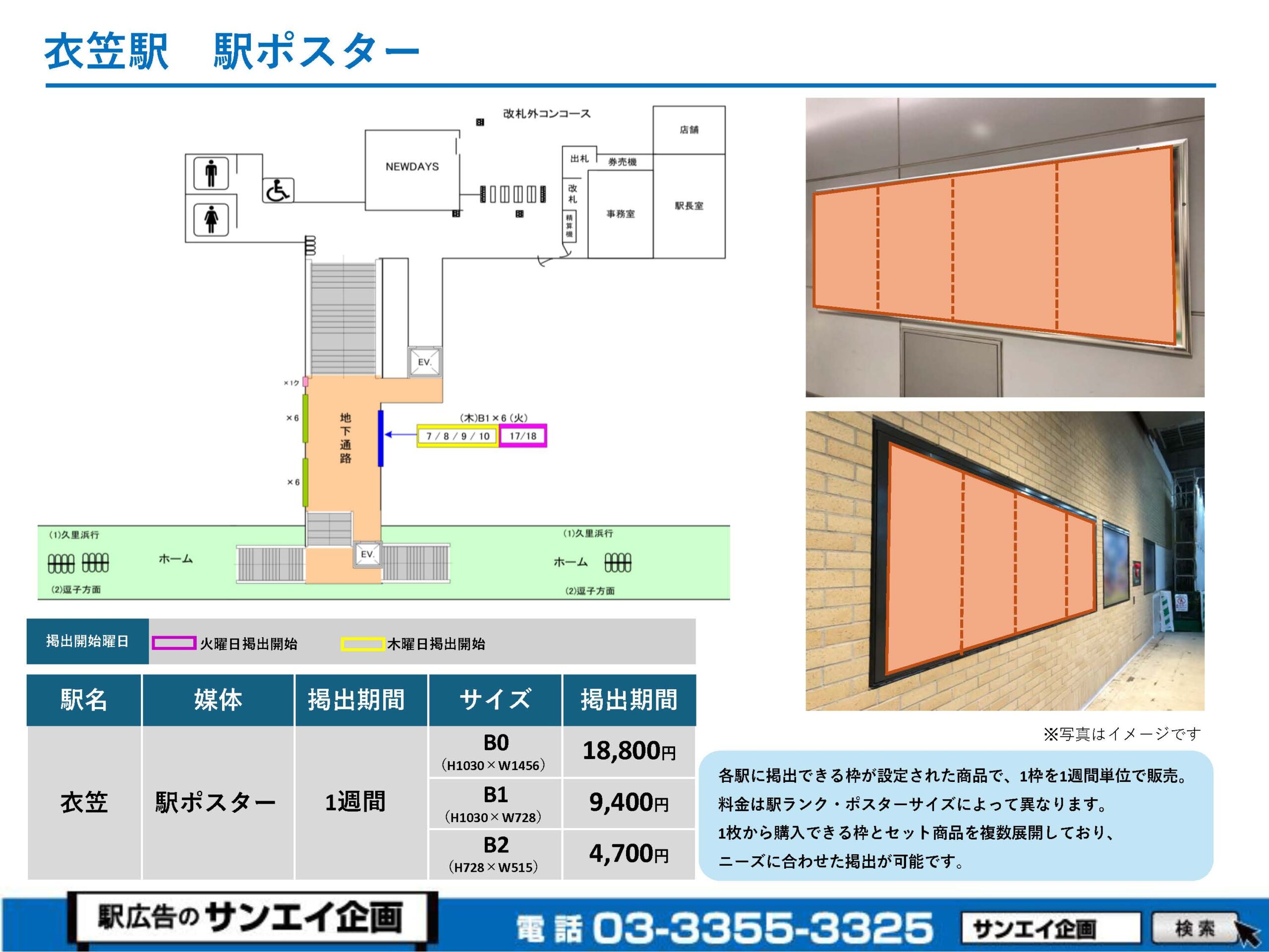 JR衣笠駅 駅ポスター掲示場所および料金表