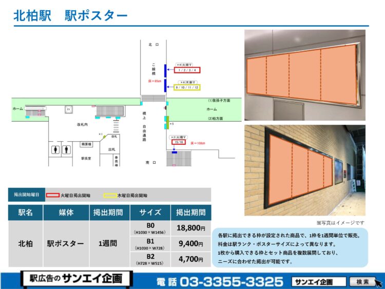 この度は、JR北柏駅の駅貼りポスター(駅に貼るポスター)のご案内です。