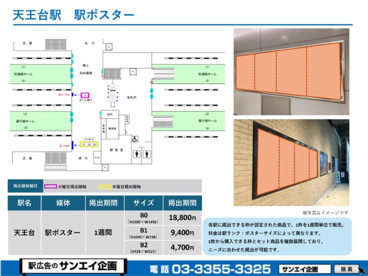 JR天王台駅 駅ポスター掲示場所および料金表