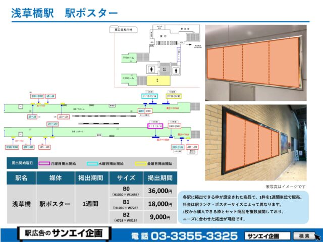 JR浅草橋駅 駅ポスター掲示場所および料金表