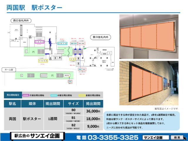 この度は、JR両国駅の駅貼りポスター(駅に貼るポスター)のご案内です。