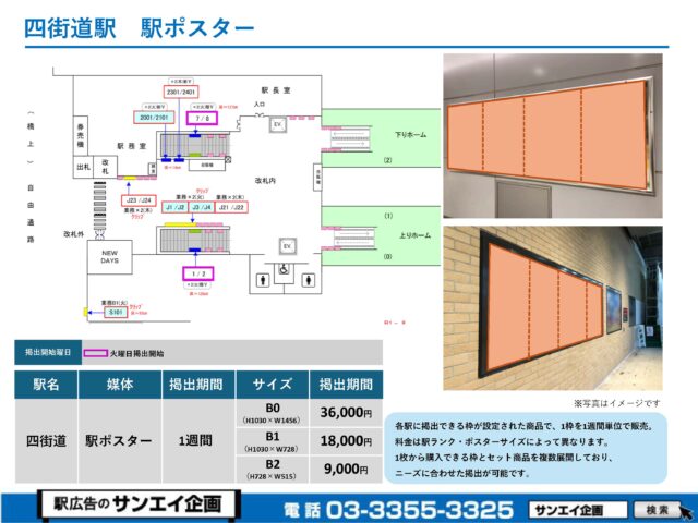 この度は、JR四街道駅の駅貼りポスター(駅に貼るポスター)のご案内です。