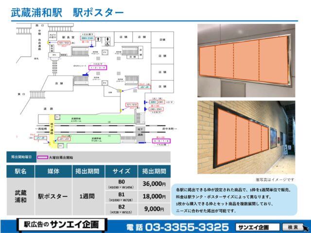 JR武蔵浦和駅 駅ポスター掲示場所および料金表